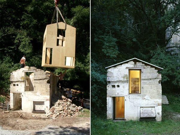 When I saw pictures of this project online, I was amazed at the simplicity of the solution. It is genius. The ancient, fragile exterior is preserved. Inside is a new home.